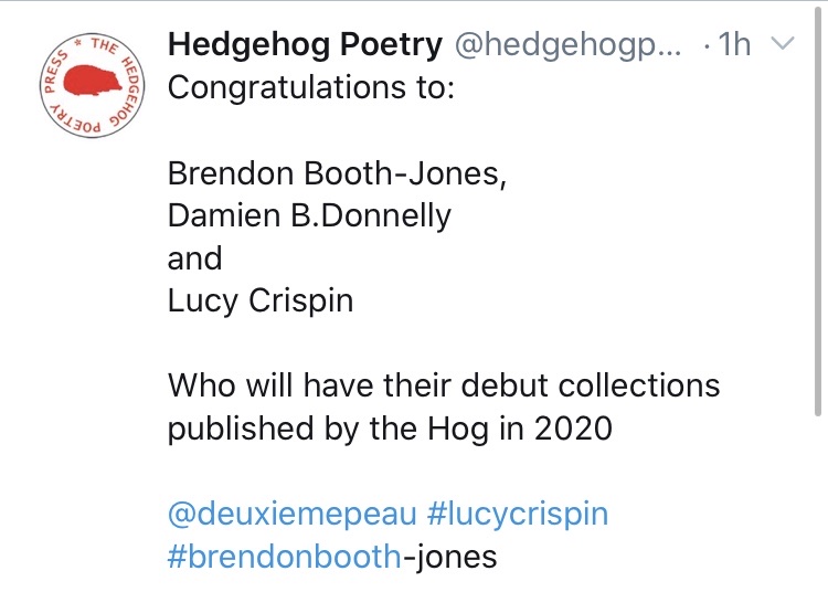 In the meantime, if you are you looking for more information about The Hedgehog Poetry Press, its creator and its authors then come back soon as I will be starting a series of interviews with Mark Davidson, its creator and some of the Hoglets as they launch new collections. Stay tuned for more information. Meanwhile The Hedgehog Poetry Press can be found at…